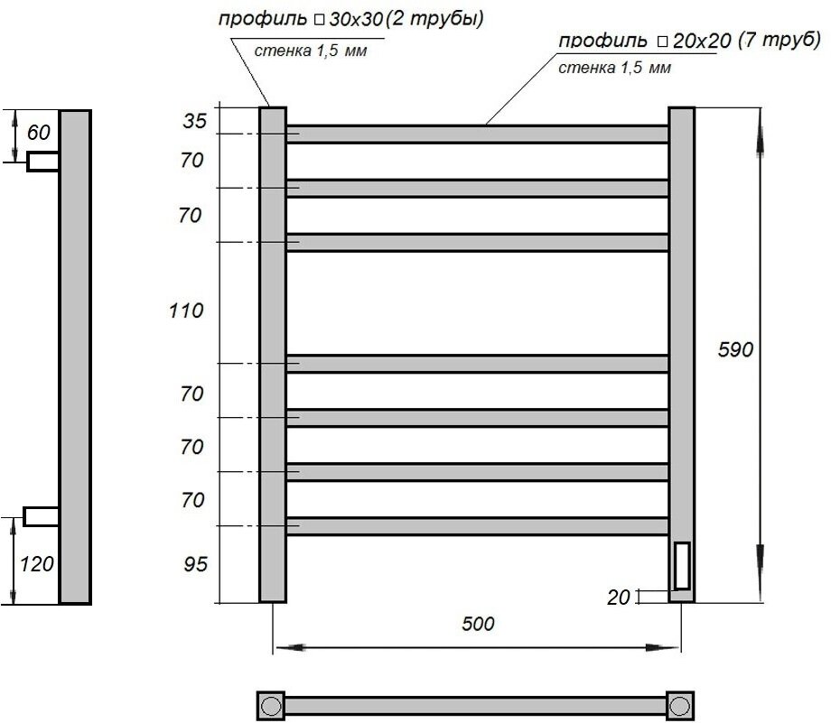 | ВКоробке | Полотенцесушитель - 1 шт. Терморегулятор - 1 шт. Комплект креплений - 1 шт. Электрический кабель - 1 шт. Инструкция - 1 шт. |