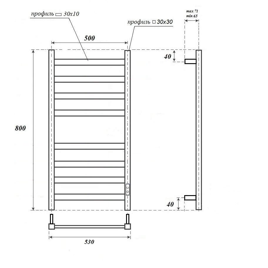 Электрический полотенцесушитель Point Меркурий PN83858 П8 500x800 диммер справа Хром (размер: 80x53 см)