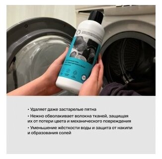 Умягчение воды: Формула геля способствует уменьшению жёсткости воды и защищает нагревательные элементы стиральной машины от накипи и образования солей, тем самым повышая срок ее службы.