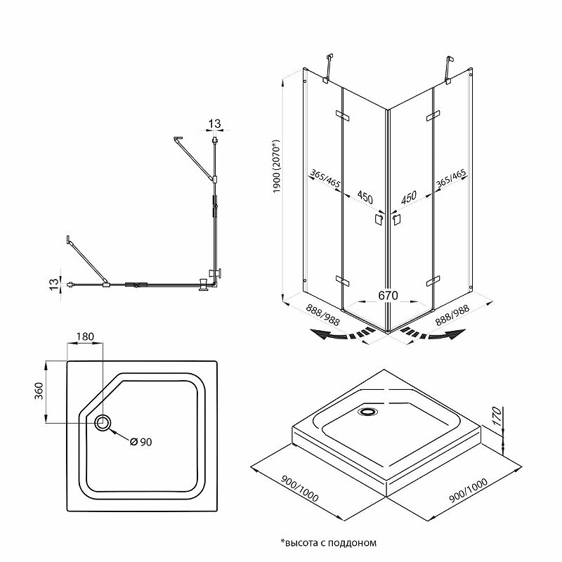 - Размер (ШхВхД): 900х2070х900 мм.