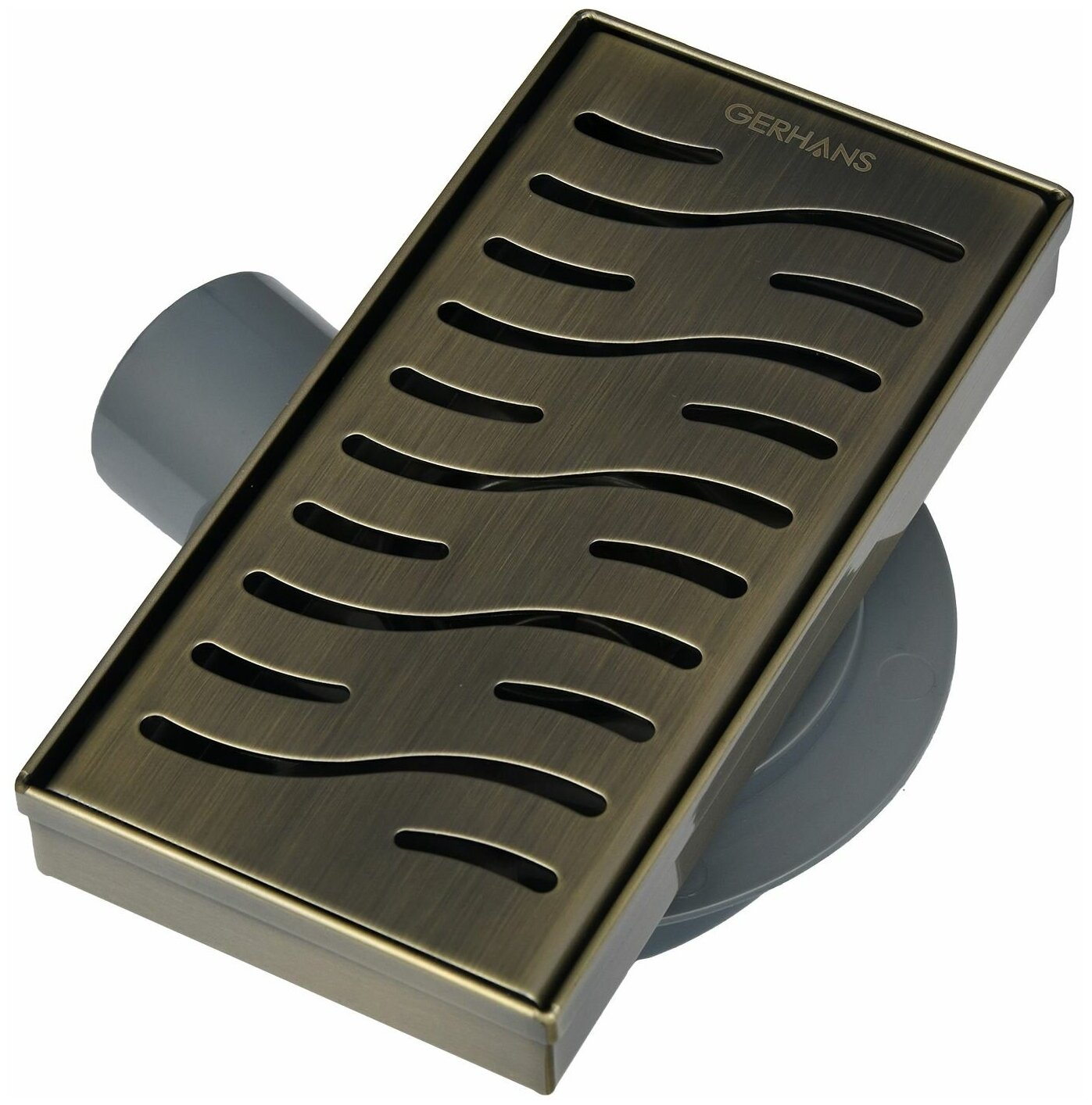 Душевой лоток Gerhans K80410 с гидрозатвором античная бронза C-20