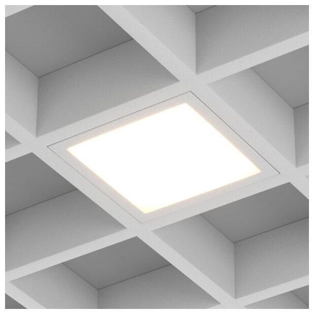 Встраиваемый светильник даунлайт для установки в потолки Грильято с размером ячейки 100х100 мм и высотой направляющих 30, 40 или 50 мм. Мощность 12 Вт, св. поток 920 лм, 77 лм/Вт, дневной 4000 K, CRI>90, угол 90°, напряжение питания 230 В. Белый квадратный корпус из алюминия, степень защиты IP40. Размер: длина 90 мм, ширина 90 мм, высота 40 мм. Монтаж встраиваемый, установочное отверстие: длина 90 мм, ширина 90 мм. Драйвер 24-42 В, 300 мА, пульсация