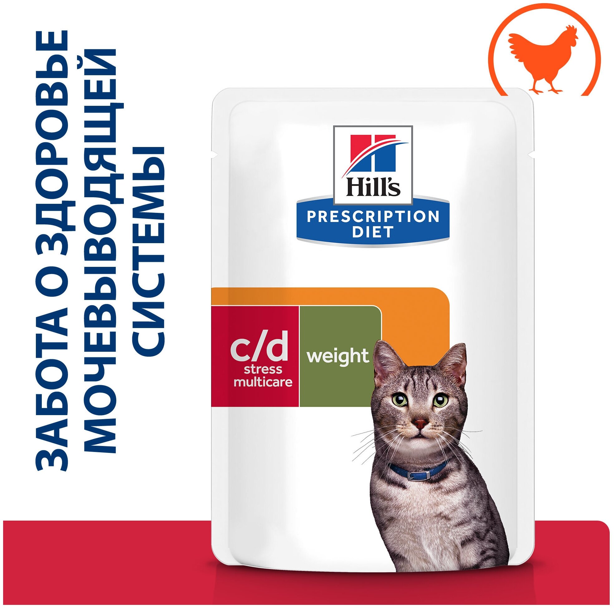 Hill's Prescription Diet Metabolic CD Urinary Stress Влажный корм для взрослых кошек в форме кусочков в соусе с курицей 85 г