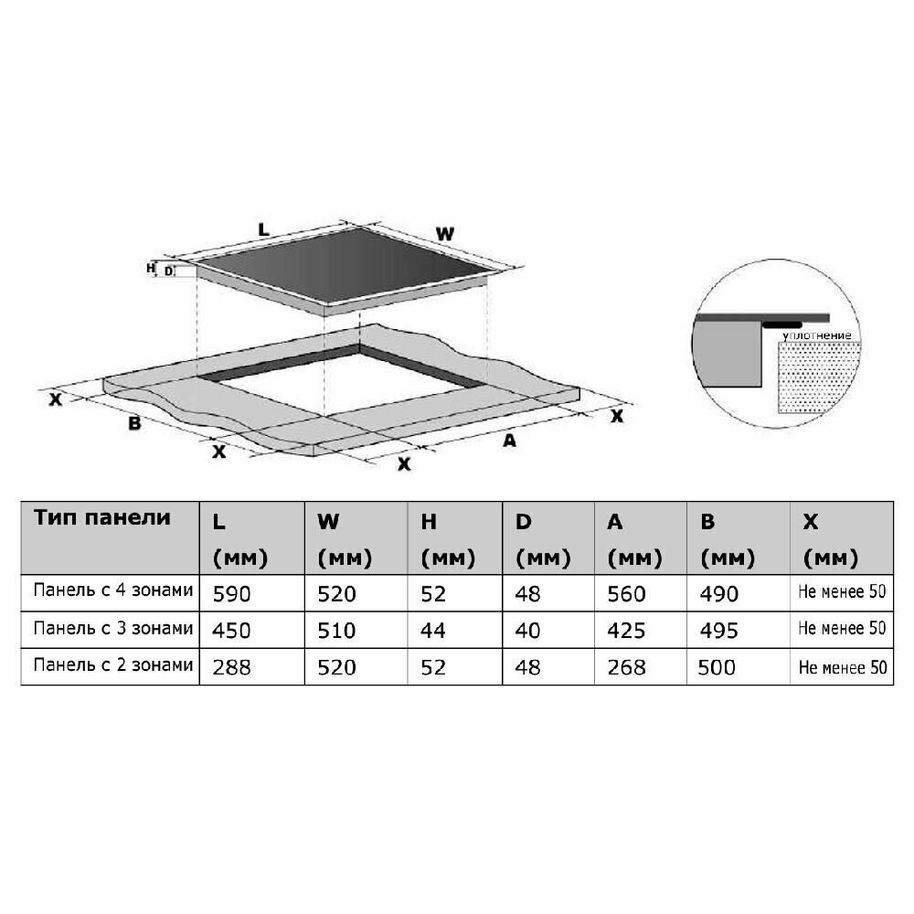 | Тип установки встраиваемой панели | Независимая |