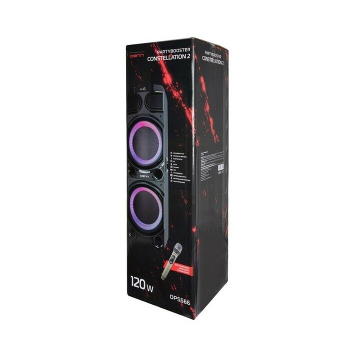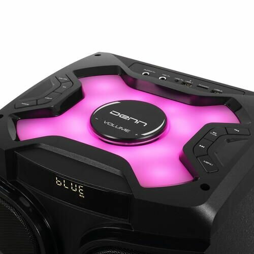 Домашняя аудиосистема Denn DPS566 мощностью 120 Вт обладает широким набором функций, что делает ее не только домашней системой, но и настоящим патибоксом. Встроенный FM-модуль позволяет слушать любимые радиостанции, а благодаря слотам microSD и USB можно устанавливать карты и накопители памяти с готовыми плейлистами для тематических вечеринок. Подсветка корпуса создает световые эффекты в формате светового шоу.Аудиосистема Denn DPS566 воспроизводит звуки в диапазоне 50-180 Гц с возможностью регулировки баса при помощи пульта ДУ или сегментной светодиодной панели. Для воспроизведения звука можно подключать устройство через Bluetooth к любым компьютерным системам и смартфонам. Конструкцией корпуса предусмотрены выходы для гитары и микрофона. В комплект входит беспроводной микрофон с регулировкой эхо и громкости, а вместе с ним вы получаете функцию «Караоке». Аудиосистема выполнена в противоударном корпусе и содержит ручку для удобства транспортировки.