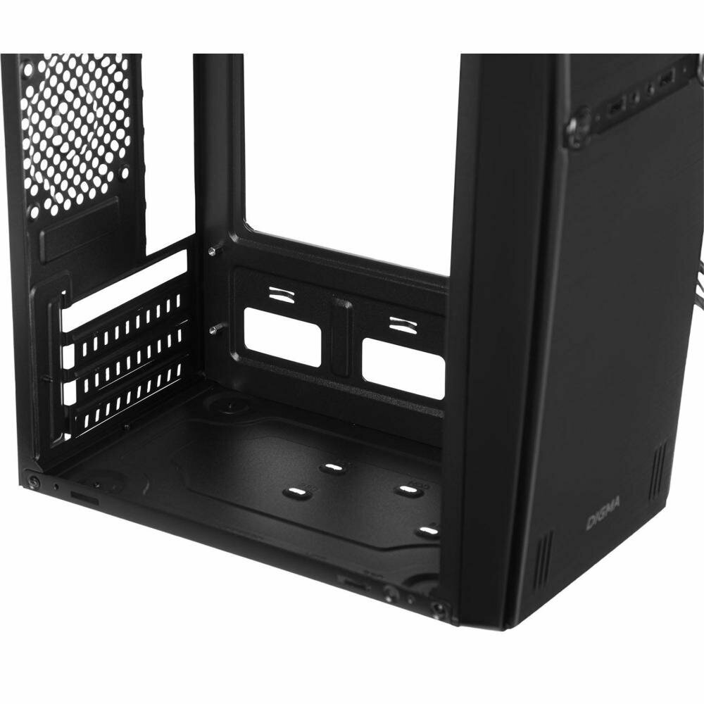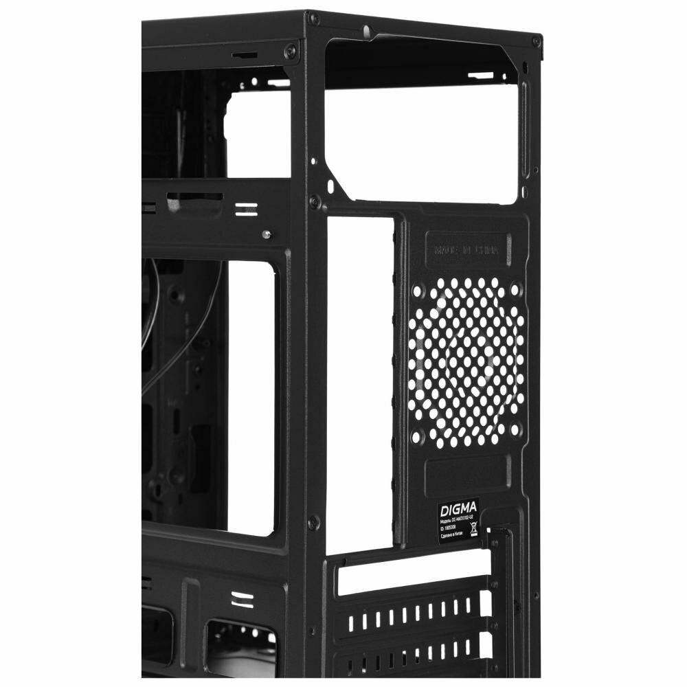 Компьютерный корпус DIGMA DC-MATX102-U2 – оптимальный выбор для системного блока при создании игрового или офисного ПК. Он обеспечивает для внутренних комплектующих стабильный температурный режим и защищает их от механических повреждений. Корпус изготовлен из стали: толщина стенок – 0,4 мм (вес не превышает 2 кг). Материал устойчив к проникновению пыли и влаги к «начинке», а также к деформации и ударам. Для бесперебойного и долговечного функционирования ПК требуется эффективная система охлаждения. Предусмотрена поддержка установки вентиляторов: на передней и боковой стенке – по 120 мм, на задней стенке – 80 мм. На корпусе для ПК есть аудиоразъем для подключения акустической системы и 2 интерфейса типа USB 2.0 для флеш-носителей и иных гаджетов. Разъемы расположены на фронтальной панели: можно подключать периферийные устройства, не разворачивая корпус. В корпусе имеются отсеки для установки комплектующих: конструкция помогает создать любой ПК – офисную модель или игровой компьютер. Из внутренних отсеков – 2 по 3.5” и 3 по 2.5”, для установки жестких дисков и SSD. Корпус с типоразмером Mini-Tower – оптимальный выбор пользователей, которые хотят собрать ПК, не привлекающий внимания и не занимающий много места в комнате. За счет 4 слотов расширения корпус подойдет для создания мощной системы: достаточно установить дополнительные компоненты. Некоторые из компонентов могут занимать несколько слотов, поэтому выбирайте более компактную «начинку».