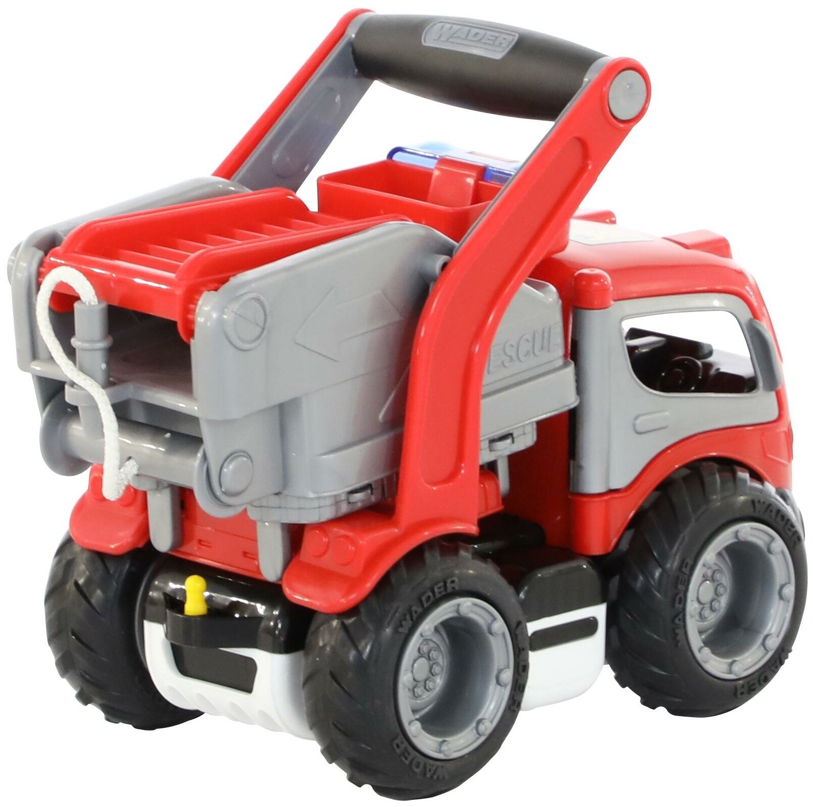 Функциональный автомобиль-самосвал из серии ГрипТрак выполнен в оригинальном дизайне, при его производстве используется прочная, качественная пластмасса яркой расцветки. У пожарного автомобиля - большие резиновые колёса. У автомобиля поднимается пожарная лестница, открываются двери. Малышу особенно понравится возможность переносить автомобиль за удобную ручку. Кроме этого, пожарный автомобиль можно везти за верёвочку, для которой спереди машинки предусмотрено специальное отверстие.