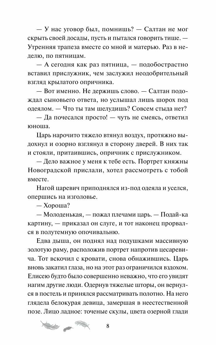 Я была захвачена в плен с самой первой главы, где сразу поняла, что царевич Елисей будет ещё тот интересный кадр. Не типичный такой наследник царя Салтана, а прототип современного парня, избалованного богатствами родителя и вниманием девушек.