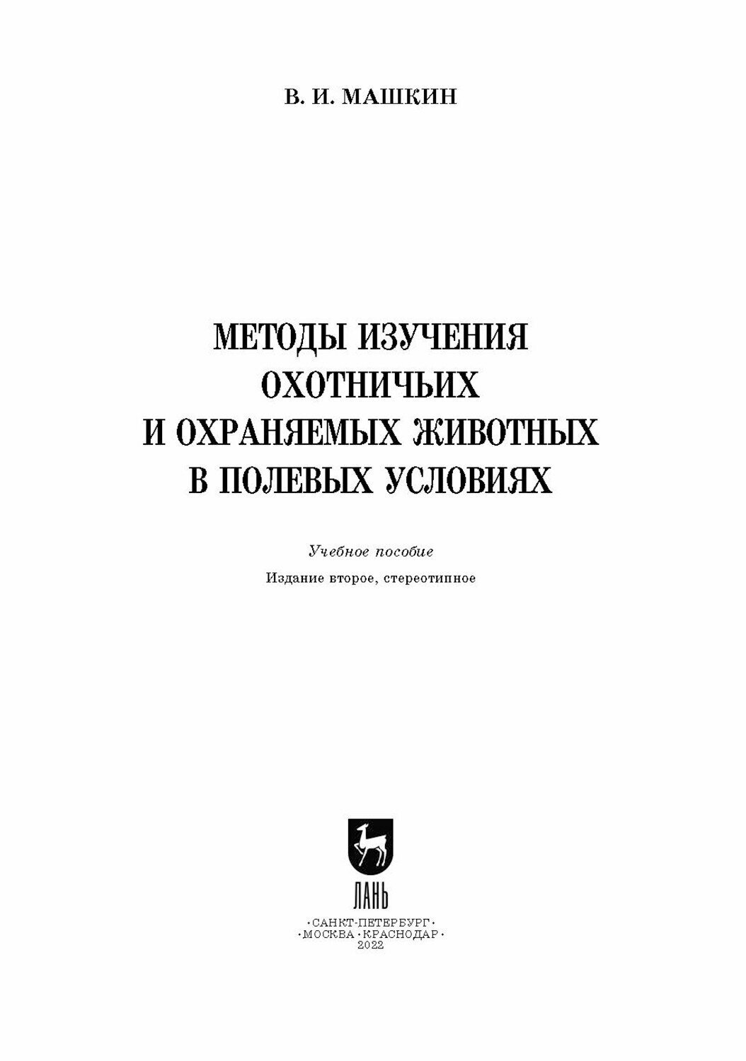 Методы изучения охотничьих и охраняемых животных в полевых условиях. Учебное пособие (В. И. Машкин); Издательство ЛАНЬ, 2022