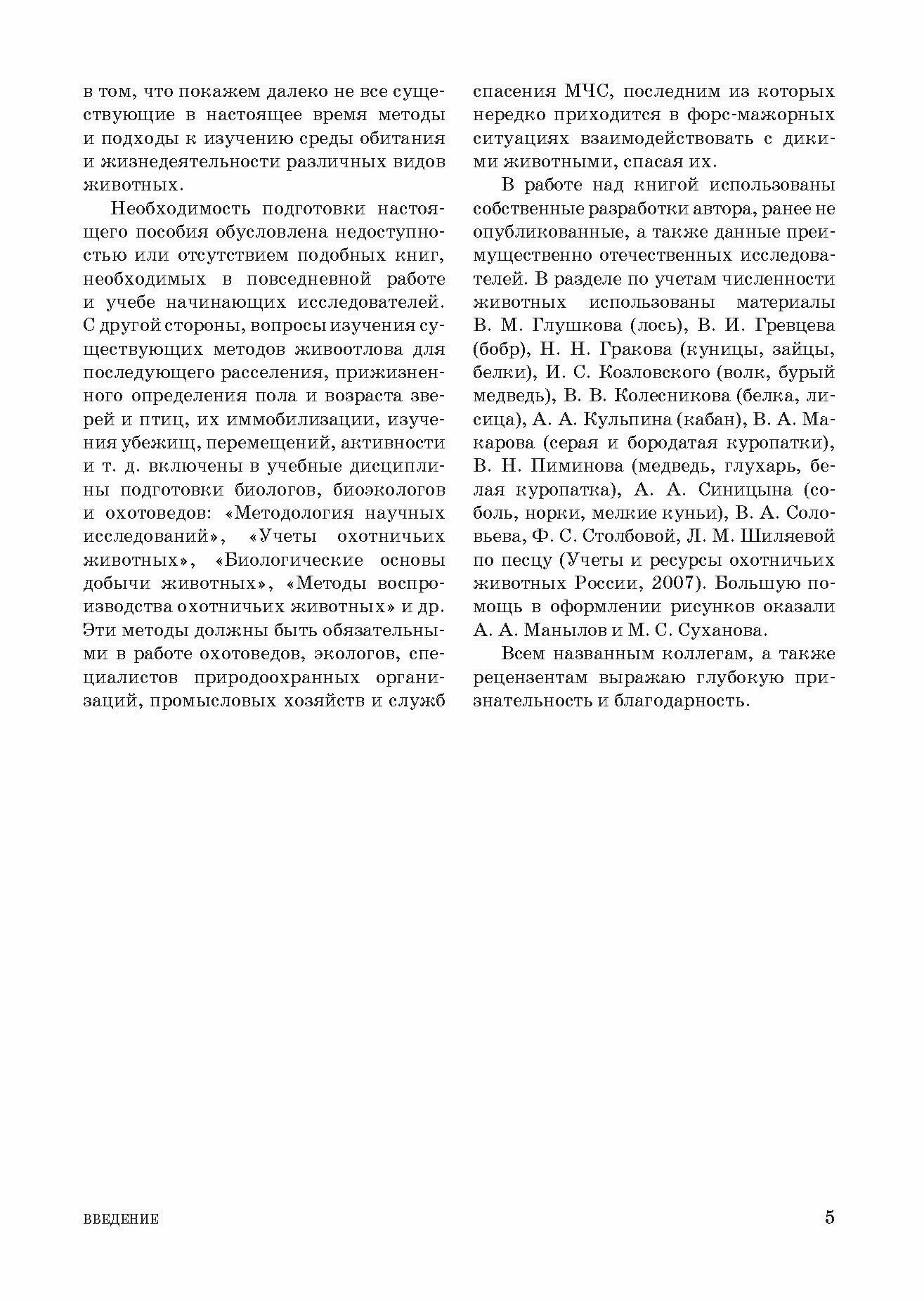 В пособии приведены прижизненные методы изучения охотничьих животных в полевых условиях: учеты численности и обездвиживание животных, живоотлов и строение убежищ, мониторинг состояния ресурсов животных и методы индивидуального мечения, определение пола и возраста и др.