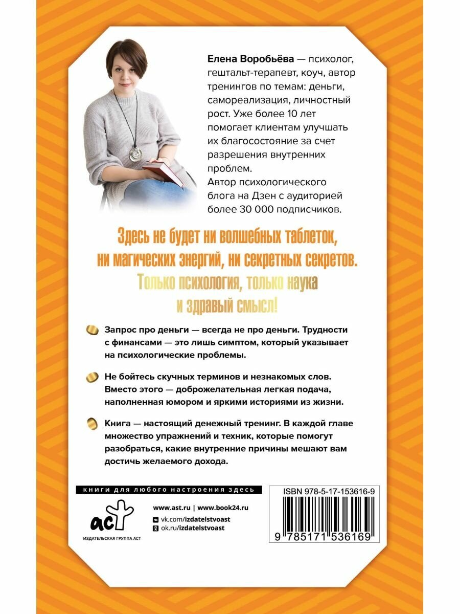 - Книга - настоящий денежный тренинг. В каждой главе множество упражнений и техник, которые помогут разобраться, какие внутренние причины мешают вам достичь желаемого дохода.