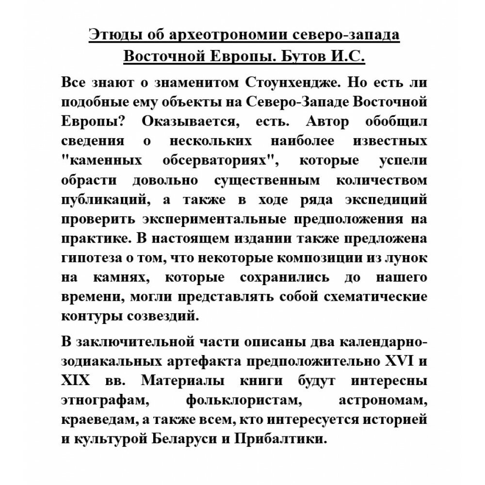 На моем столе лежит книга «Этюды об археоастрономии северо-запада Восточной Европы». Издание для России уникальное, так как сама тема археоастрономии или астроархеологии у нас поднимается нечасто. А уж изданий такого уровня я вообще не могу вспомнить. Здесь со скрупулезной тщательность описаны азимуты наблюдений у некоторых камней на восходы или заходы Солнца, но всегда это сделано так красочно, что ты даже не задумываешься о той сложности расчётов, которая за этим кроется. Вообще тема Прибалтики применительно к астроархеологическим исследованиям звучит в последнее время редко, а переведенных книг по этой тематике, пожалуй, и вовсе нет. Именно поэтому книга И. С. Бутова заполняет эту лакуну и становится уникальной нишевой работой, которая будет интересна не только специалистам, но и всем увлеченным нашей небесной мифологией.