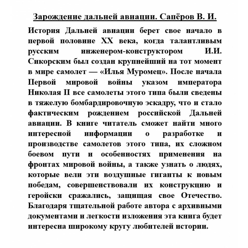 Зарождение дальней авиации. Эскадра воздушных кораблей "Илья Муромец" (Саперов Владимир Ильич); Вече, 2023
