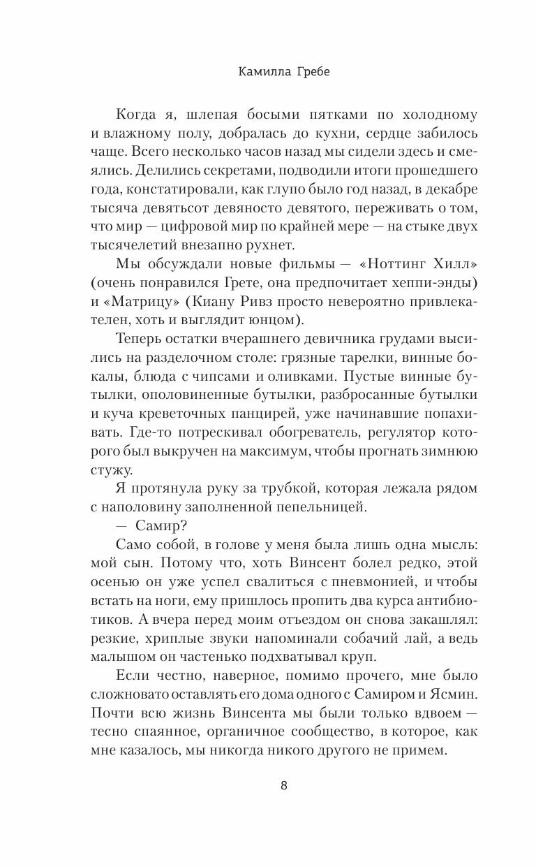 В пятой книге своей детективной серии Камилла Гребе в который уже раз ломает свои собственные каноны построения сюжета и рвет шаблоны, пробуя новый подход. Детективное расследование в книге присутствует, но как бы в косвенном виде, а не в том рутинном обличье каждодневных полицейских летучек и лихорадочных раздумий, в каком направлении «копать», которое привычно для построения огромного количества шаблонных произведений о более или менее гениальных следаках, профайлерах и прочей братии.