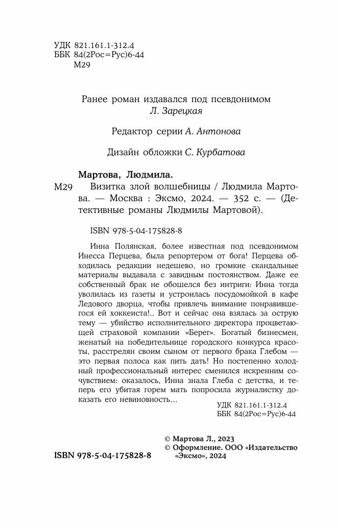 Книга: Визитка злой волшебницы (Людмила Мартова); Эксмо, Редакция 1, 2023