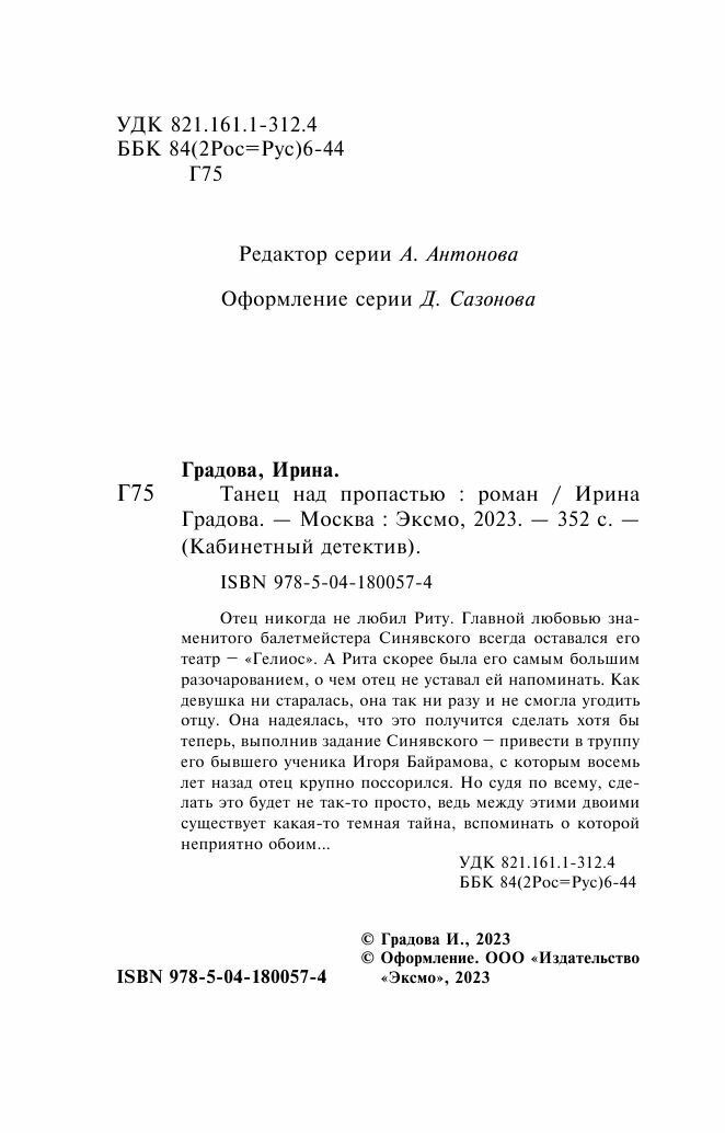 Книга: Танец над пропастью (Ирина Градова); Эксмо, Редакция 1, 2023