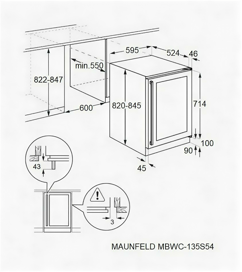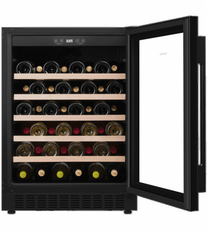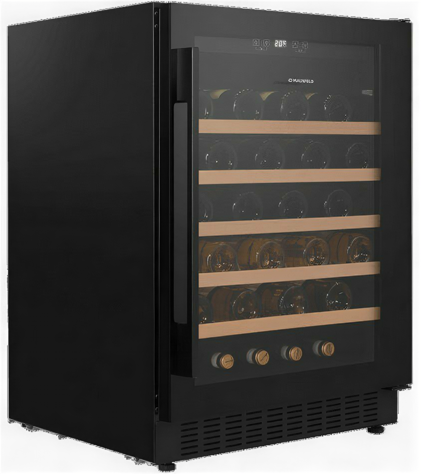 Винный шкаф MAUNFELD MBWC–135S54 Современный винный шкаф MAUNFELD – инновационное решение проблемы качественного хранения вина. Винный шкаф предназначен для встройки под столешницу.Возможность встраивания позволяет интегрировать его в любую кухонную мебель. Его стильный черный цвет и стеклянная дверь придают ему эстетическую привлекательность. Вместительность до 54 бутылок и обеспечивает идеальные условия хранения вина благодаря эффективной технологии равномерной циркуляции воздуха. Сенсорное управление позволит точно настроить температуру и влажность. Низкий уровень шума и потребления энергии делает устройство экономичным и удобным в использовании.Расширенная функциональность, изысканный дизайн, полноценная имитация условий «винного погреба» – всё это винный шкаф .В нем можно хранить до 54 бутылок при