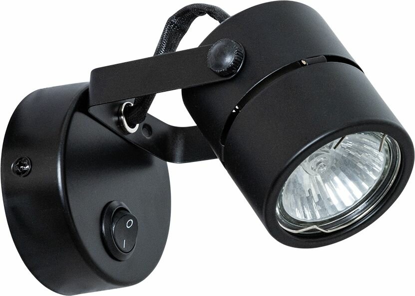 **Спот поворотный Arte Lamp Mizar** — это настенный светильник для акцентного освещения. Плафон поворачивается, позволяя гибко регулировать направление освещения. Металлический матовый черный корпус выглядит лаконично и современно.