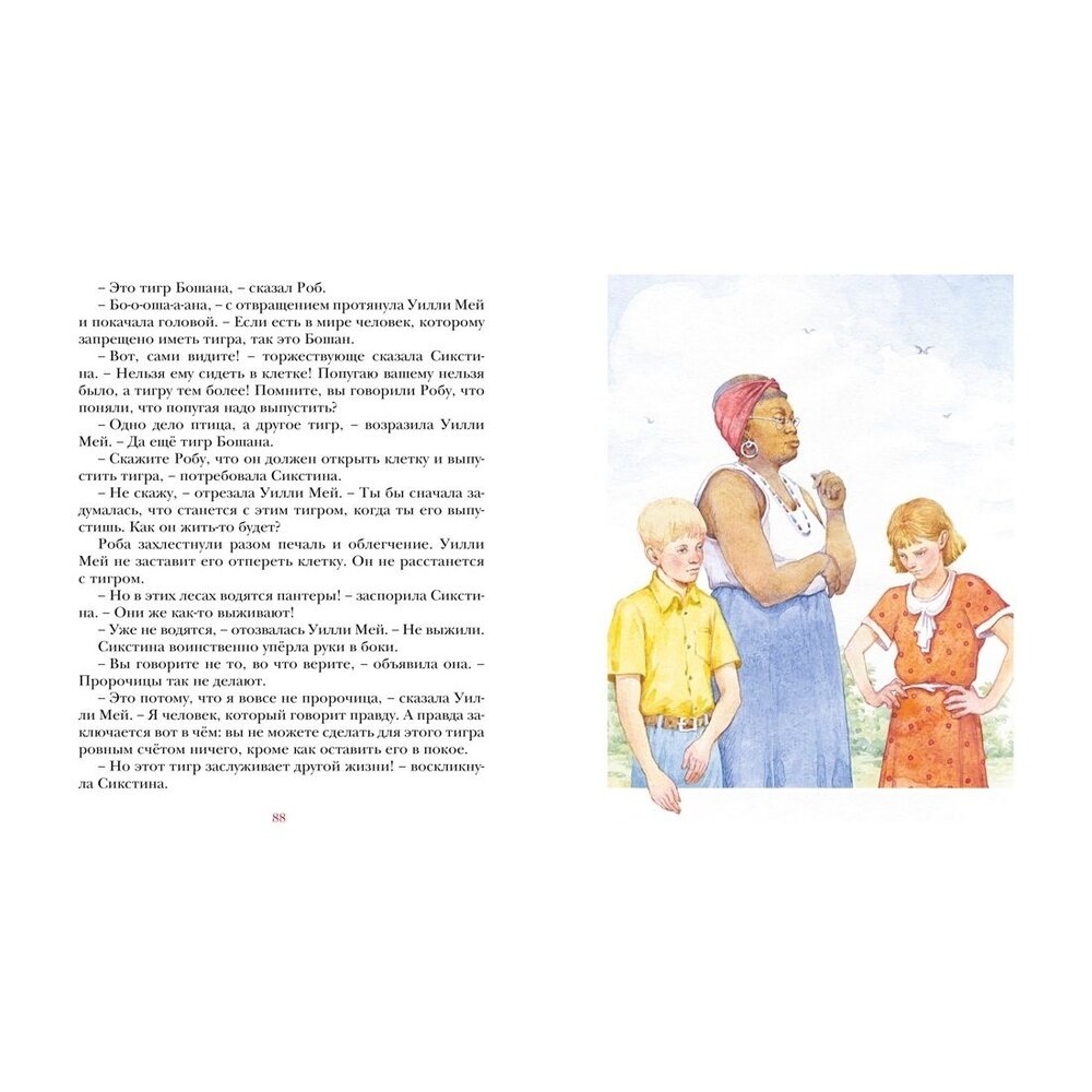 Издательство Махаон порадовало качественным изданием очередного произведения Кейт ДиКамило с красочными иллюстрациями Александра Глебова. Автор повествует о душевных переживаниях подростков Роба и Сикстины, которые в попытке сохранить жизнь животному, сами того не замечая, сохраняют свои души и взрослеют. Шестиклассник рано потерял мать. В школе он изгой и ни с кем не дружит. Но все меняется, когда в классе не появляется новенькая.