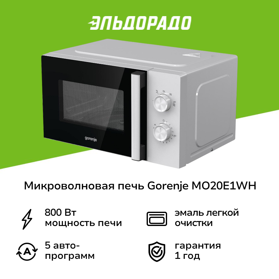 Микроволновая Печь Gorenje MO20E1WH 20л. 800Вт белый