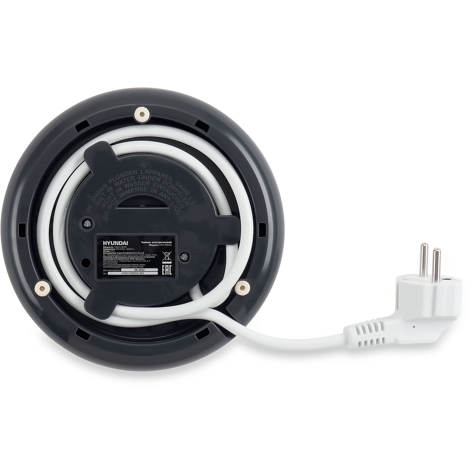 Без жидкости Hyundai HYK-P3025 не включается – так работает его система защиты от выхода из строя. В конце каждого цикла нагрева устройство само отключается. Крышка электрочайника открывается по нажатию кнопки, находящейся на ручке, и надежно защёлкивается при закрытии.