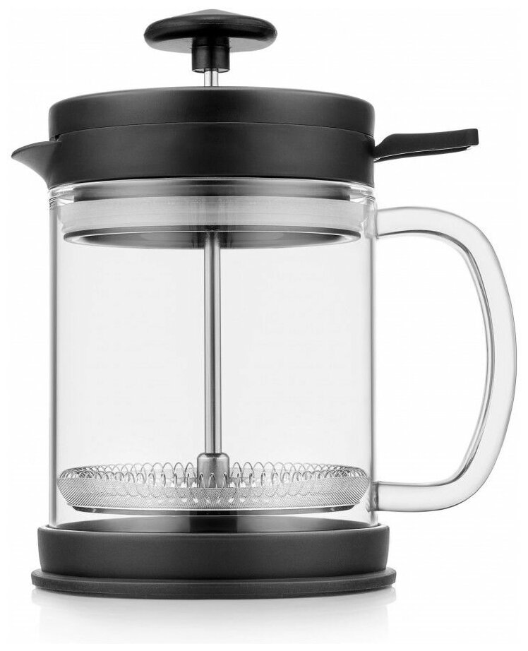 Колба френч-пресса, объемом 600 мл изготовлена из термостойкого боросиликатного стекла. Оно выдерживает температуру от -20°C до +280°C. Колба устойчива к царапинам и не мутнеет со временем.