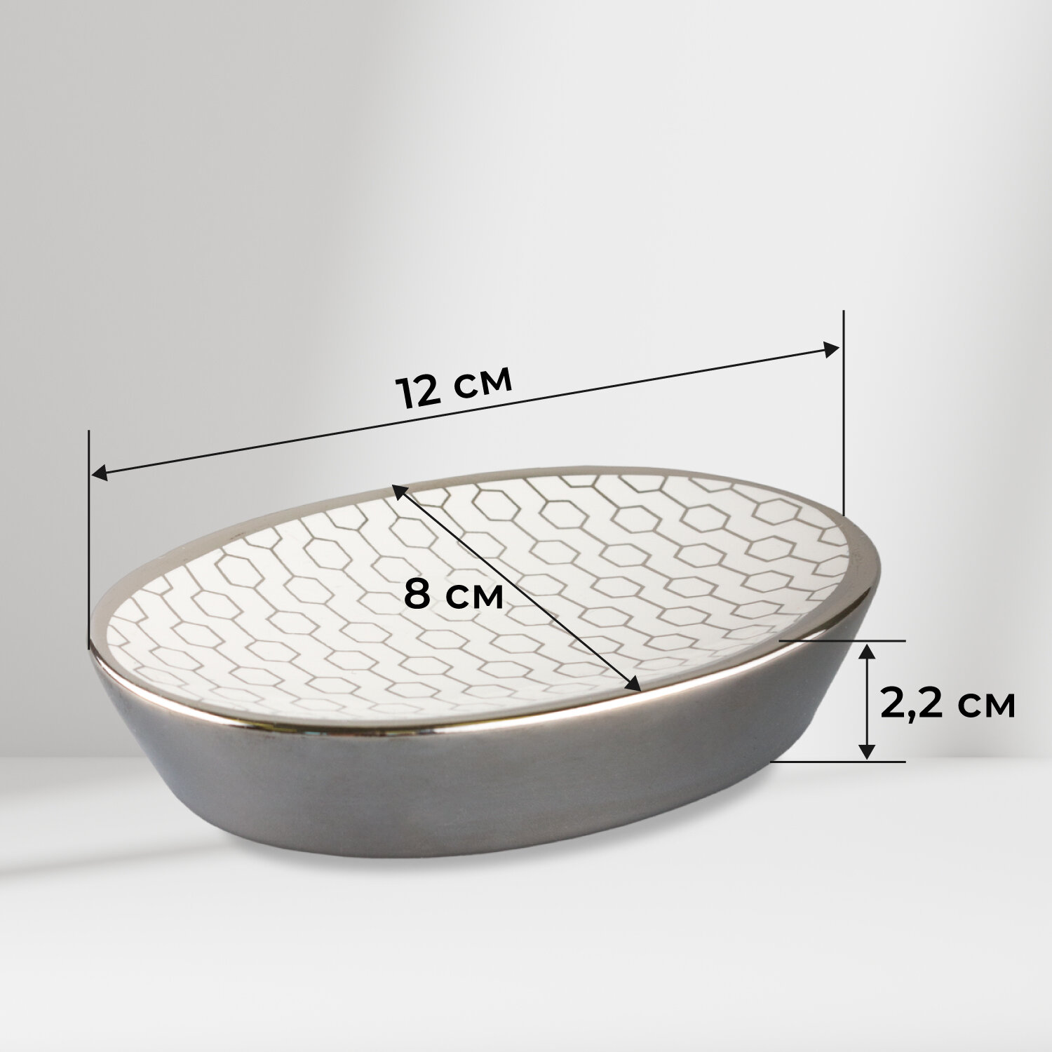 Мыльница для ванны экологически чистого материала - керамики белого цвета с хромированными вставками и рисунком. Мыльница для ванной настольная овальной формы. Мыльницы для ванну/для кухни влагоустойчива. Мыльница представлена в коллекции вместе с дозатором для жидкого мыла, ершиком напольным и подставкой для зубных щеток. Вы можете собрать всю коллекцию! Все изделия идеально подходит для использования в ванной комнате. Они отлично переносят повышенную температуру и влажность. Аксессуары для ванной комнаты со временем не теряют форму и не трескаются.Вы можете собрать весь набор для ванной комнаты! Все изделия идеально подходит для использования в ванной комнате. Они отлично переносят повышенную температуру и влажность. Аксессуары для ванной комнаты со временем не теряют форму и не трескаются.Этот товар послужит хорошим подарком для мамы, бабушки, дочери, подруги, сестры, брата, друга, брата, для себя на новоселье, новый год, 8 марта, без повода.Также этот товар ищут как: мыльница, мыльница для кухни, мыльница керамика, все для комнаты, предметы для ванной комнаты, мыльница для ванной пластиковая, мыльница металлическая, мыльница дорожная, подставка для мыла, мыльница для ванной керамика, аксессуары в ванную, органайзеры для ванной, аквалиния, мыльница керамическая, держатель для мыла, мыльница стеклянная.