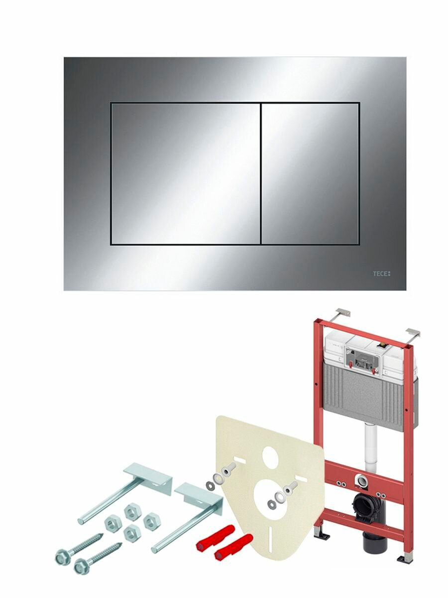 В состав комплекта входит: застенный модуль TECEbase, клавиша смыва, прокладка звукоизоляционная для унитаза, комплект кронштейнов для установки модуля.