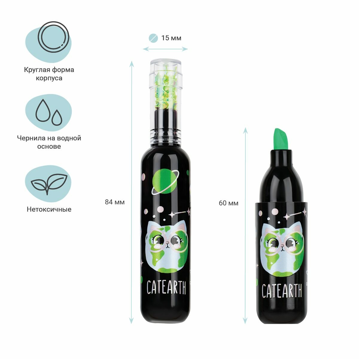 Набор текстовыделителей с неоновыми чернилами на водной основе. Длина линии до 200 метров. Скошенный наконечник. Толщина линии от 1 до 5 мм. Удобная круглая форма корпуса с дизайном. Цвет колпачка соответствует цвету чернил.