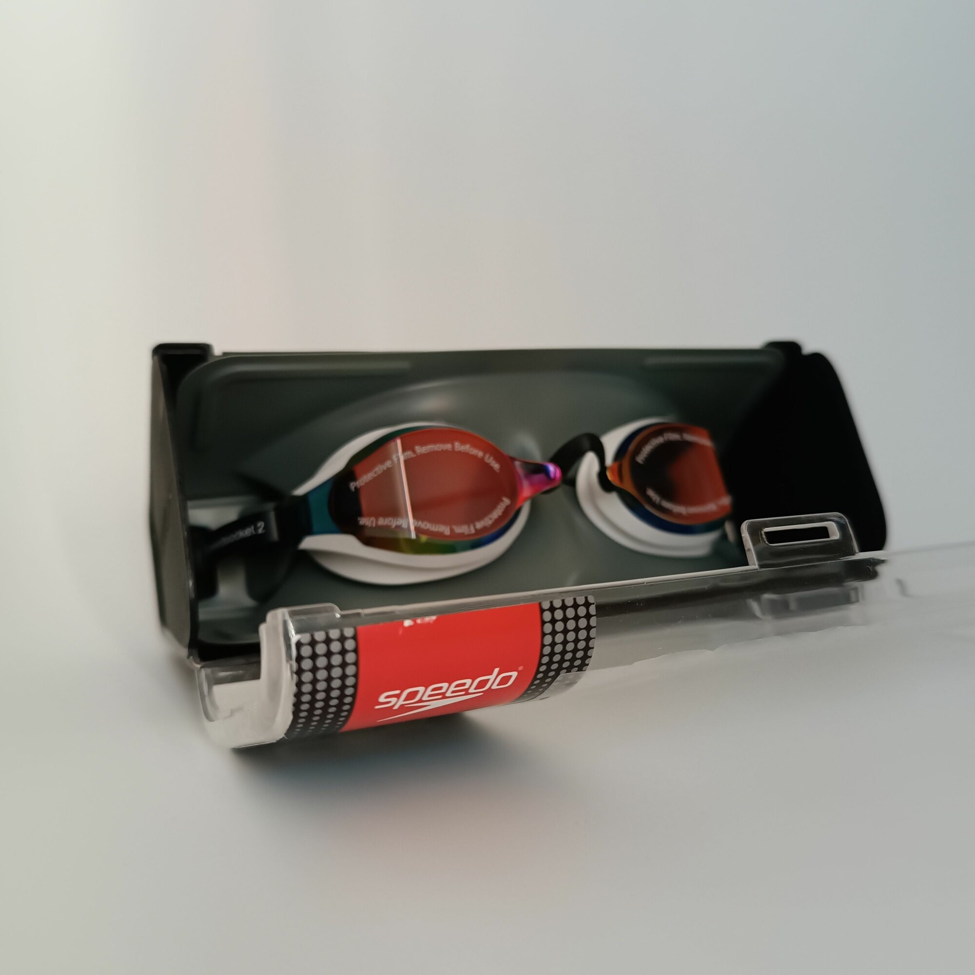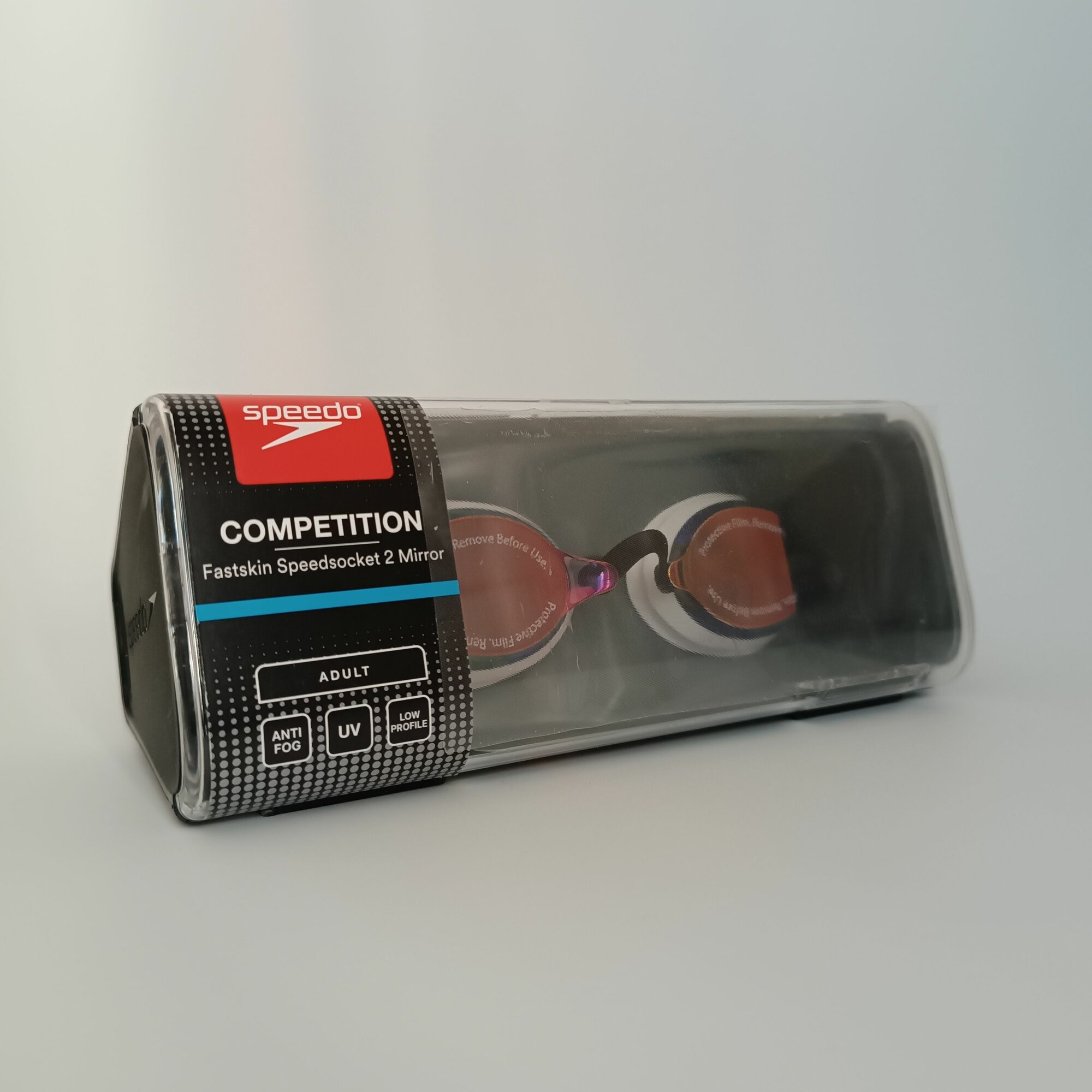 Очки Speedo Fastskin Speedsocket идеальны для использования во время соревнований. Двойной ремешок позволяет надежно зафиксировать очки для плавания, а сменные носовые перегородки способствуют оптимальной настройке. Линзы с зеркальным покрытием помогают защитить глаза от солнечных бликов и яркого света. Очки отлично подойдут для выступлений на соревнованиях благодаря своей жесткой посадке и гидродинамическим свойствам.Для предотвращения запотевания очков и масок на внутреннюю поверхность линз наносится гидрофобное средство (технология Anti-Fog), которое не дает каплям воды конденсироваться на линзах. Затем, под воздействием высокой температуры, вещество превращается в твердое покрытие.Индивидуальная упаковка - блистер.