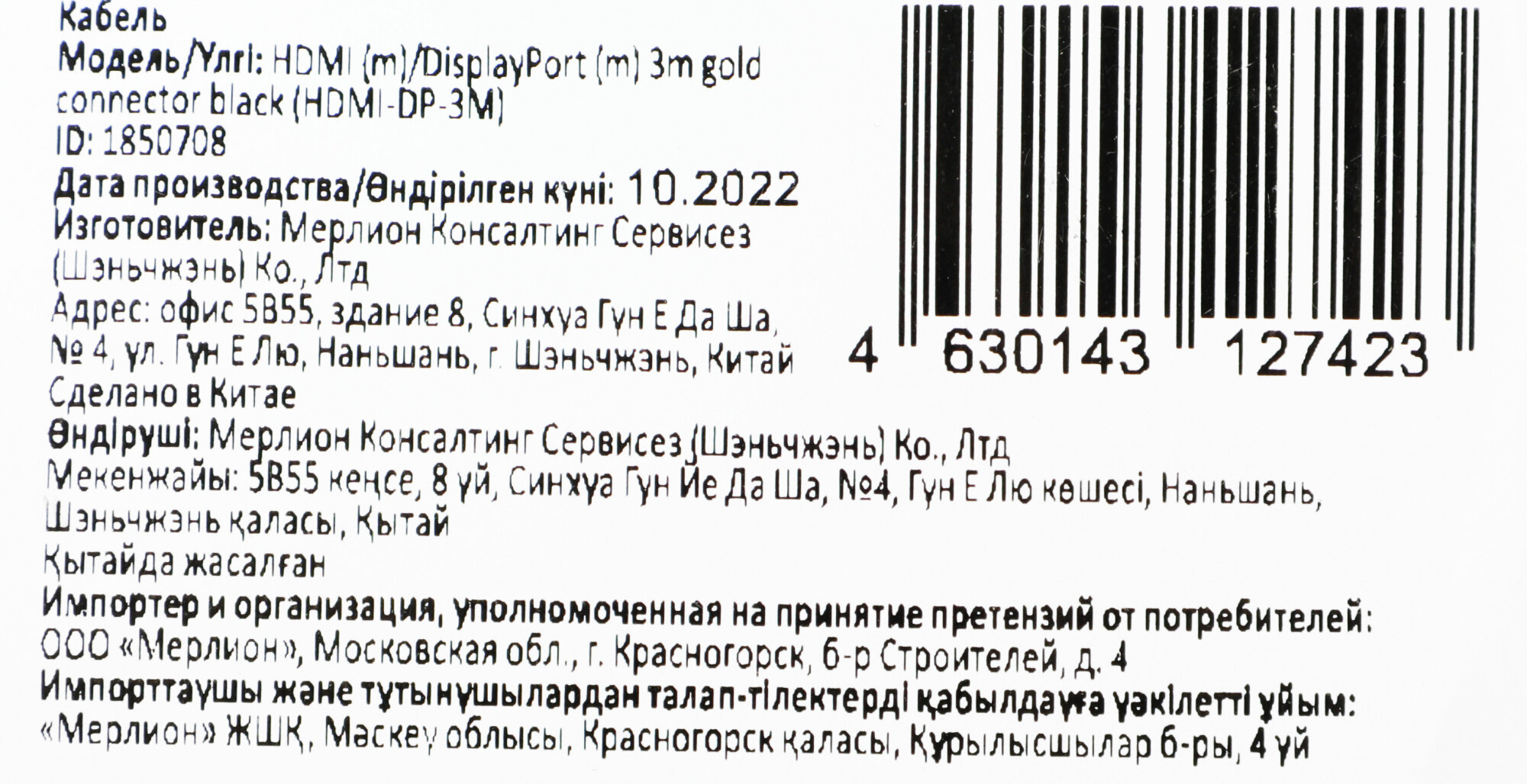 | EAN код | 4630143127423 |