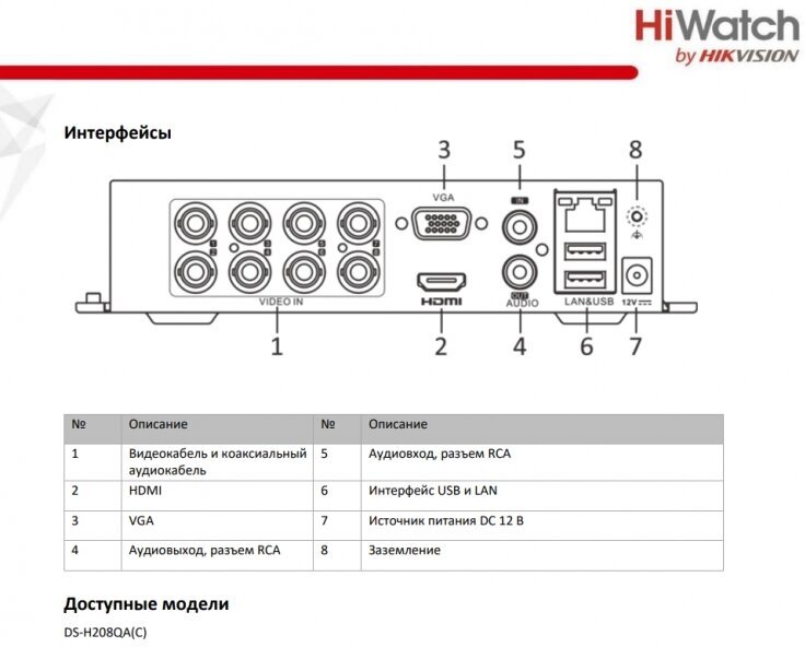 Гибридный видеорегистратор HiWatch DS-H208QA(C) предусматривает одновременное подключение к системе видеонаблюдения до 8 камер. В устройстве реализован алгоритм обнаружения движения на основе глубокого обучения. Для создания вместительного хранилища можно установить накопитель HDD/SSD объемом до 10 ТБ. Соединение с Интернет выполняется с помощью порта Ethernet со скоростью соединения 100 Мбит/с. Вывод изображения на монитор осуществляется посредством разъемов HDMI и VGA (D-Sub). Для подключения аудиоустройств в HiWatch DS-H208QA(C) предусмотрены интерфейсы AoC и RCA.