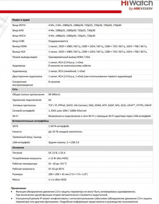 | Поддержка форматов | AHD, HD-CVI, HD-TVI |