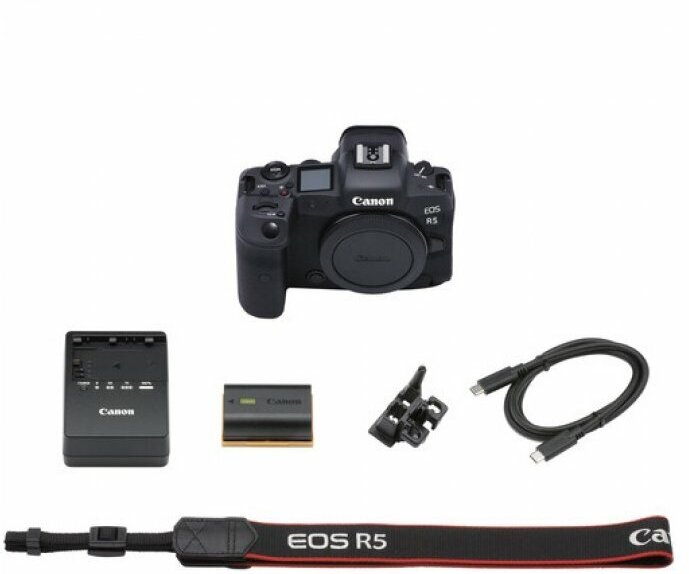 Фотоаппарат Canon EOS R5 Body V2.4 черный, 47.1Mpix, байонет Canon RF, поддержка карт памяти CFexpress Type B, SDXC UHS-II, модуль WiFi, дисплей 3.15", запись видео 8K (4147C050/4147C027)