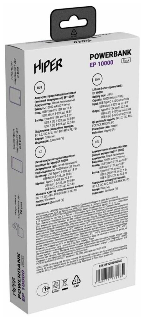 - Мобильный аккумулятор HIPER EP6600 Power Bank (Хайпер ЕП6600)