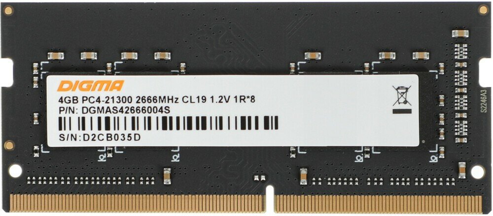 Оперативная память Digma DDR4 - 4Gb 2666 МГц SO-DIMM CL19 (dgmas42666004s)