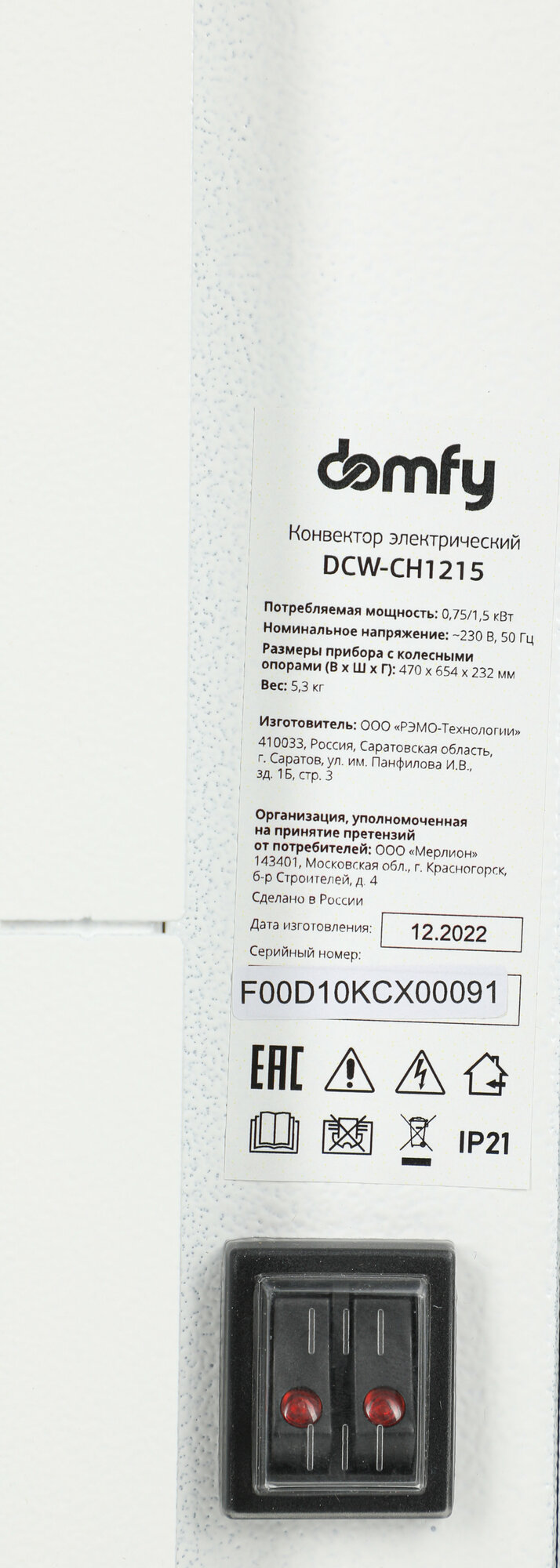 Конвектор Domfy DCW-CH1215 1500Вт белый