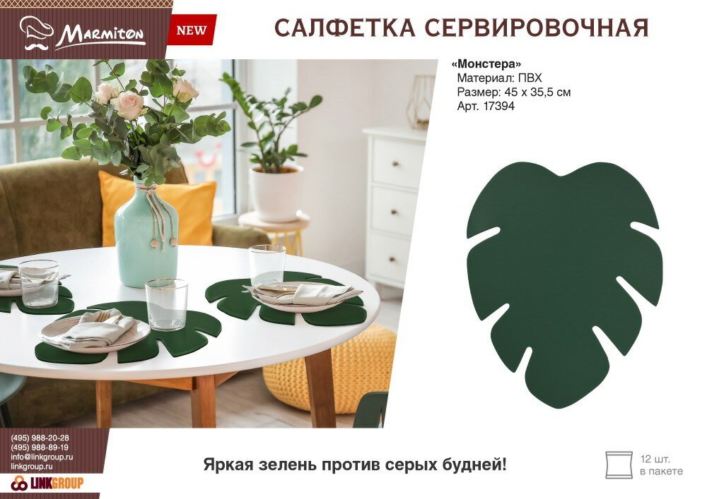 Салфетка сервировочная Marmiton Геометрия Монстера ПВХ 45x355 см зеленая