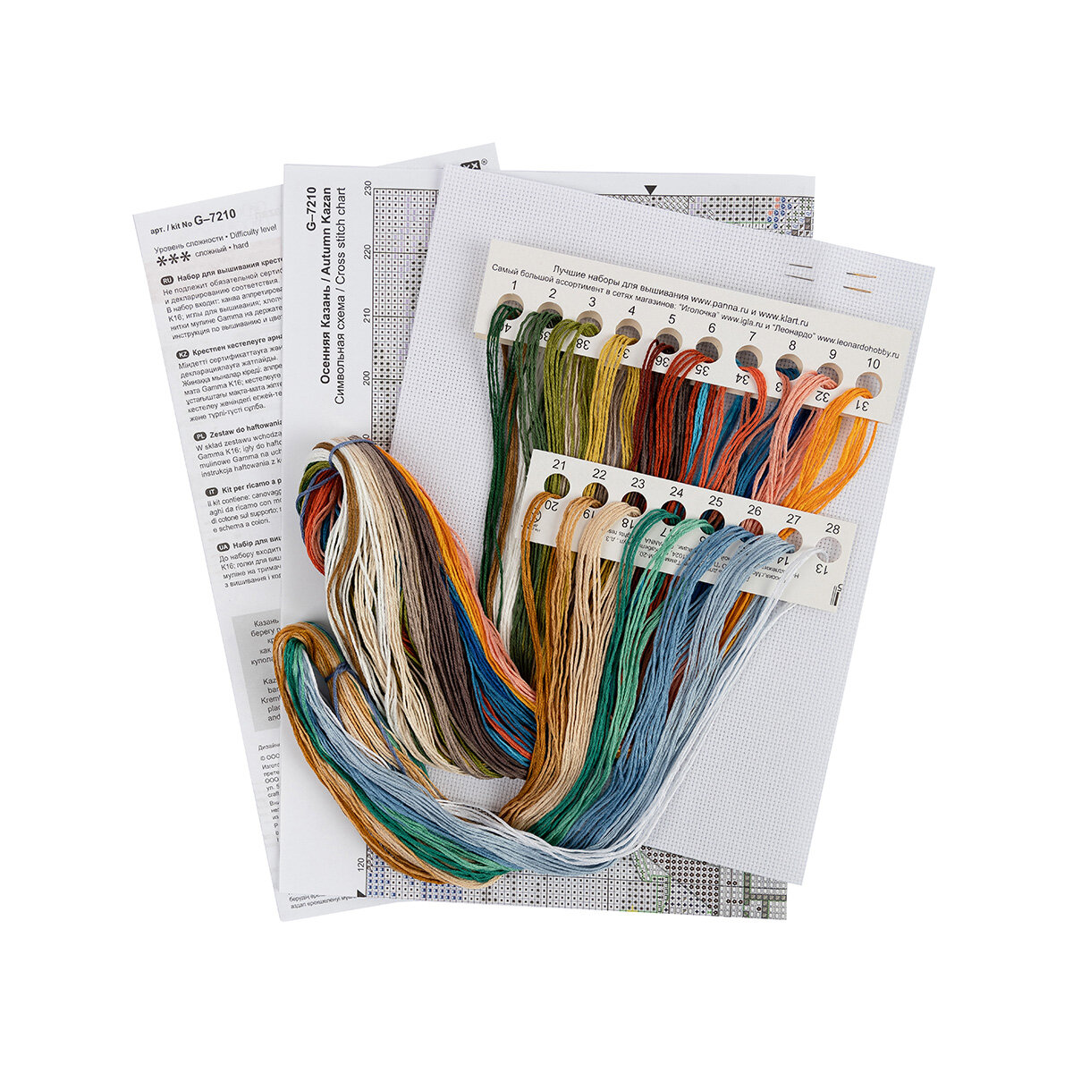 | Комплектация | канва Aida 16 ct Gamma - 1 шт; мулине Gamma - 28 цветов; игла - 1 шт; схема - 1 шт; инструкция |