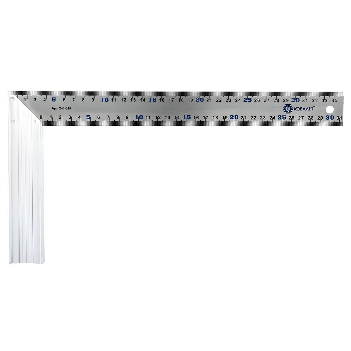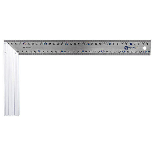 Угольник столярный 350 мм кобальт предназначен для проведения линейных измерений, контроля прямого угла сопрягаемых поверхностей, а также для разметки деталей из дерева, ДСП, а также пластика, металла, стекла, плитки и других материалов. Применяется при производстве мебельных, столярных, монтажных работ. Корпус выполнен из нержавеющей стали. Основание алюминиевое. Разметка нанесена с двух сторон полотна методом травления. Длина 350 мм, цена деления 1мм.