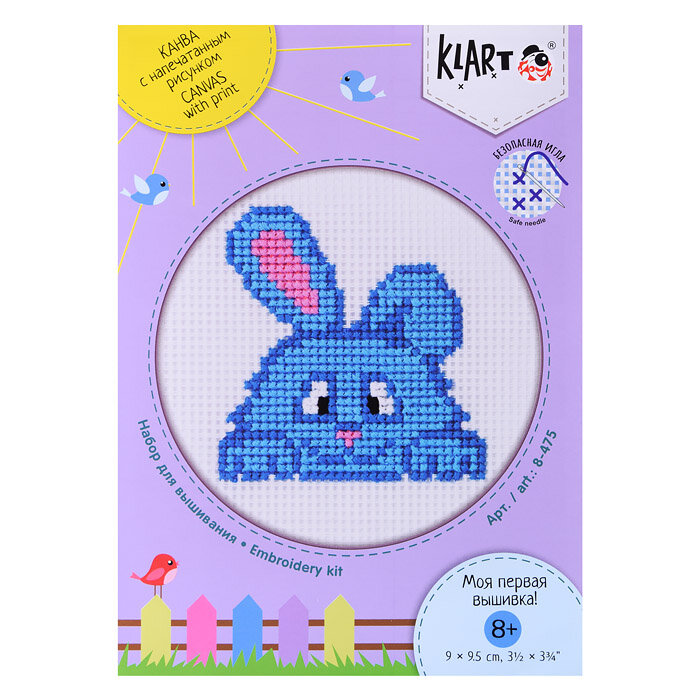 В набор для вышивания Klart входит: канва Zweigart Stramin 500/38 с напечатанной схемой, хлопчатобумажные нитки мулине Gamma, пластиковая игла для вышивания с затупленным кончиком, листовка-схема и инструкция по вышиванию.Размер готовой работы: 12 х 12 см. Серия «Детские истории» специально разработана для тренировки координации обеих рук, концентрации внимания и развития целеустремленности. Формирование этих навыков благотворно влияет на общее развитие ребенка