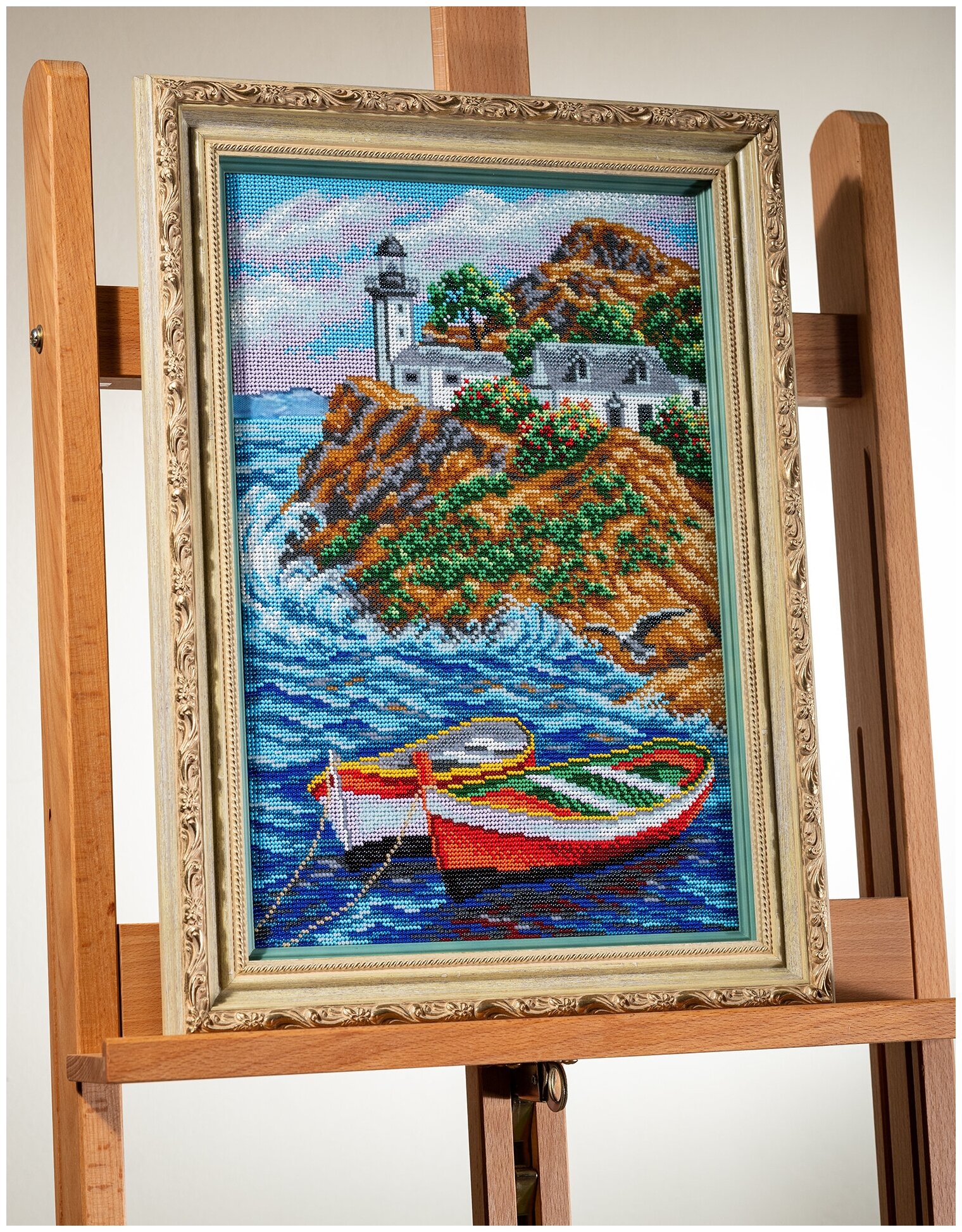 В набор входит: Канва (основа для вышивания) с фотореалистичным рисунком и схемой, цветная схема и подробные, специально разработанные, инструкции, чешский бисер, игла для бисера. Нить для пришивания бисера необходимо приобретать отдельно, она не предусмотрена в комплектации набора. Заполнение: Частичное Количество цветов:21 Схема: Цветная Цвет канвы: ткань с нанесенным рисунком Тип канвы: Aida (лён)Внимание! Рамка в комплект не входит.