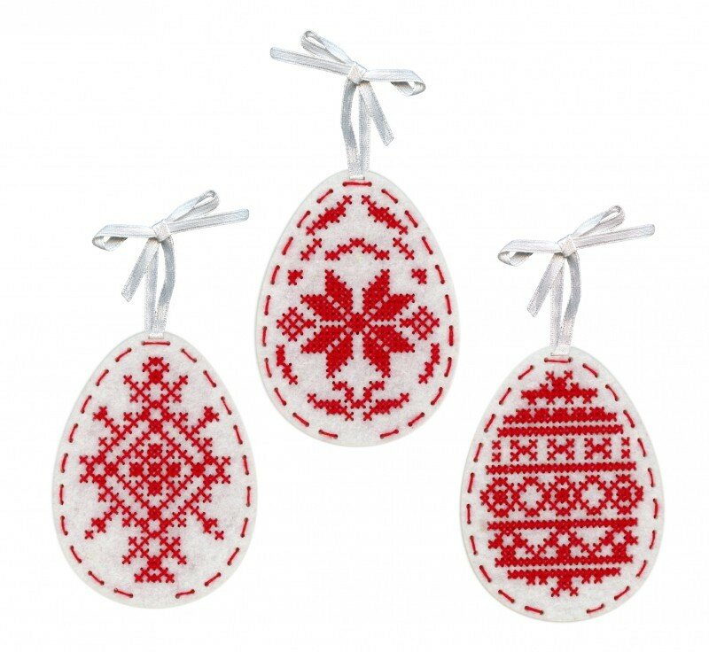 | В набор входит | 6 заготовок с перфорацией из фетра белого цвета, нитки мулине ПНК им.Кирова 1 цвета, 3 ленты, игла, схема и руководство по вышиванию |