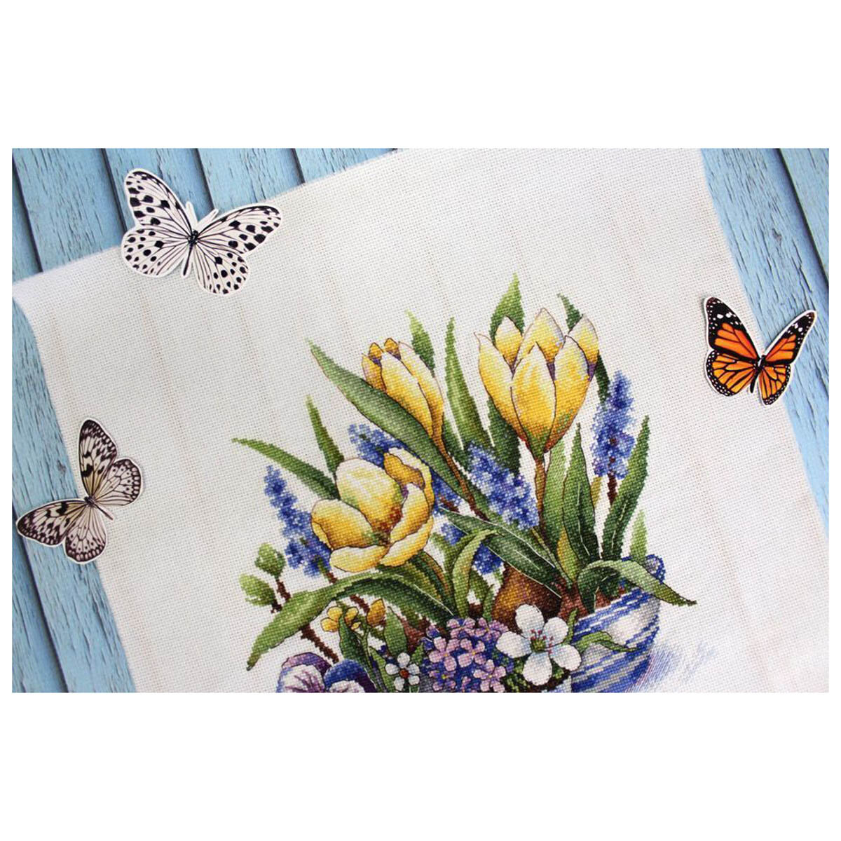 Наборы для вышивания 'МП Студия' – это продуманные схемы, тщательно подобранная цветовая палитра и материалы российского производства. Картина 'Первое дыхание весны' вышивается по канве Aida 16 каунта – этот материал позволяет выкладывать небольшие стежки и прекрасно подходит для схем с подробной детализацией. В работе используются разные техники: 'крест' позволяет делать цветовое заполнение, стежки 'бэкстич' создают четкие контуры, а отдельные штрихи в технике 'полукрест' придают изображению динамичность. Готовая картина напоминает рисунок карандашами или акварелью. Совет: если вам не хватает опыта, сделайте разметку канвы, ориентируясь по схеме. Разметка поможет вам быстрее закончить вышивку и избежать возможных ошибок. При необходимости подберите лупу с подсветкой. В наборе: канва Aida 16, хлопковое мулине, игла, цветная схема, инструкция. Количество цветов: 33.