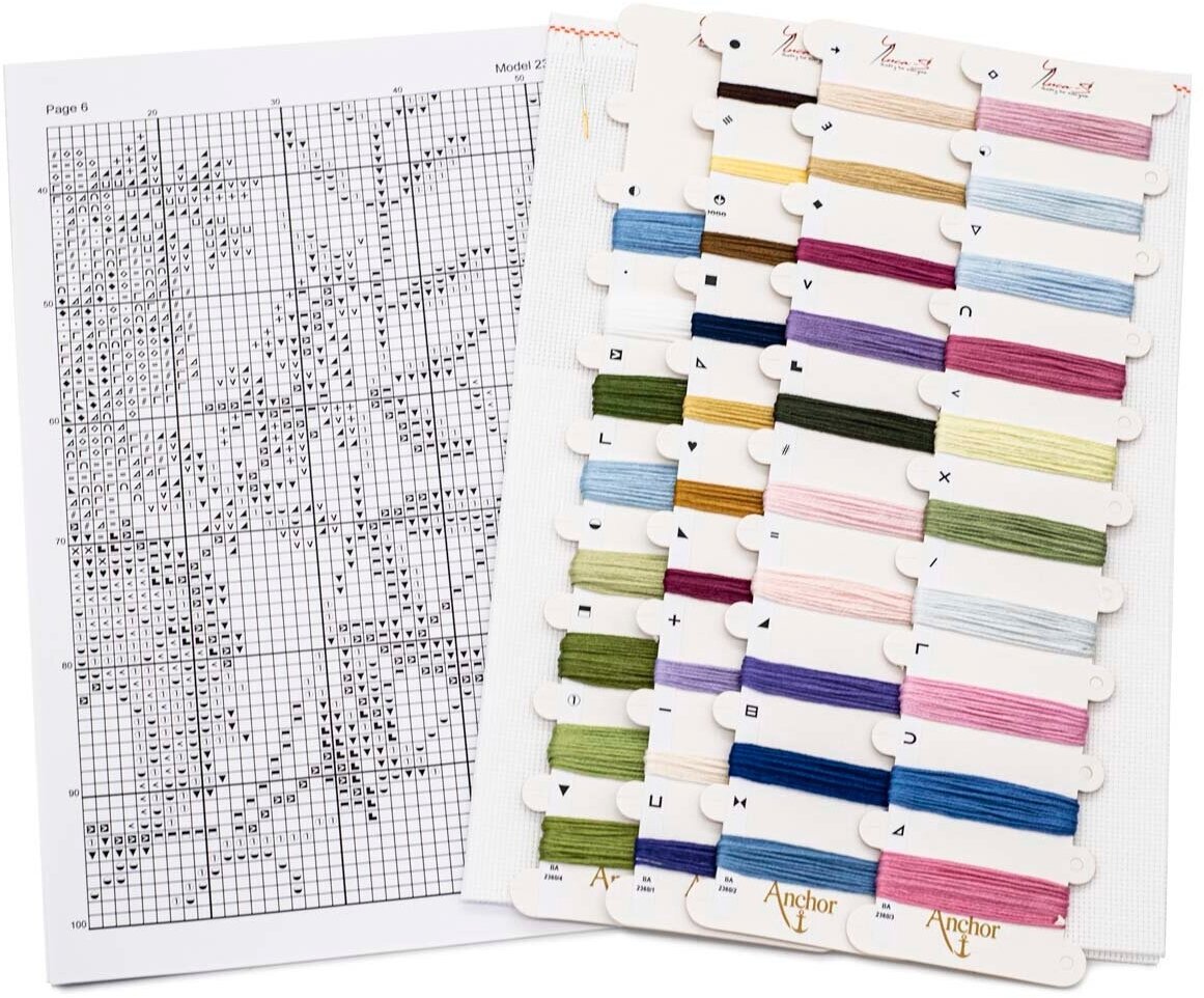 | В набор входит | канва Aida Zweigart 16 ct, хлопковое мулине Luca-S, черно-белая символьная схема, игла, инструкция по вышиванию. |