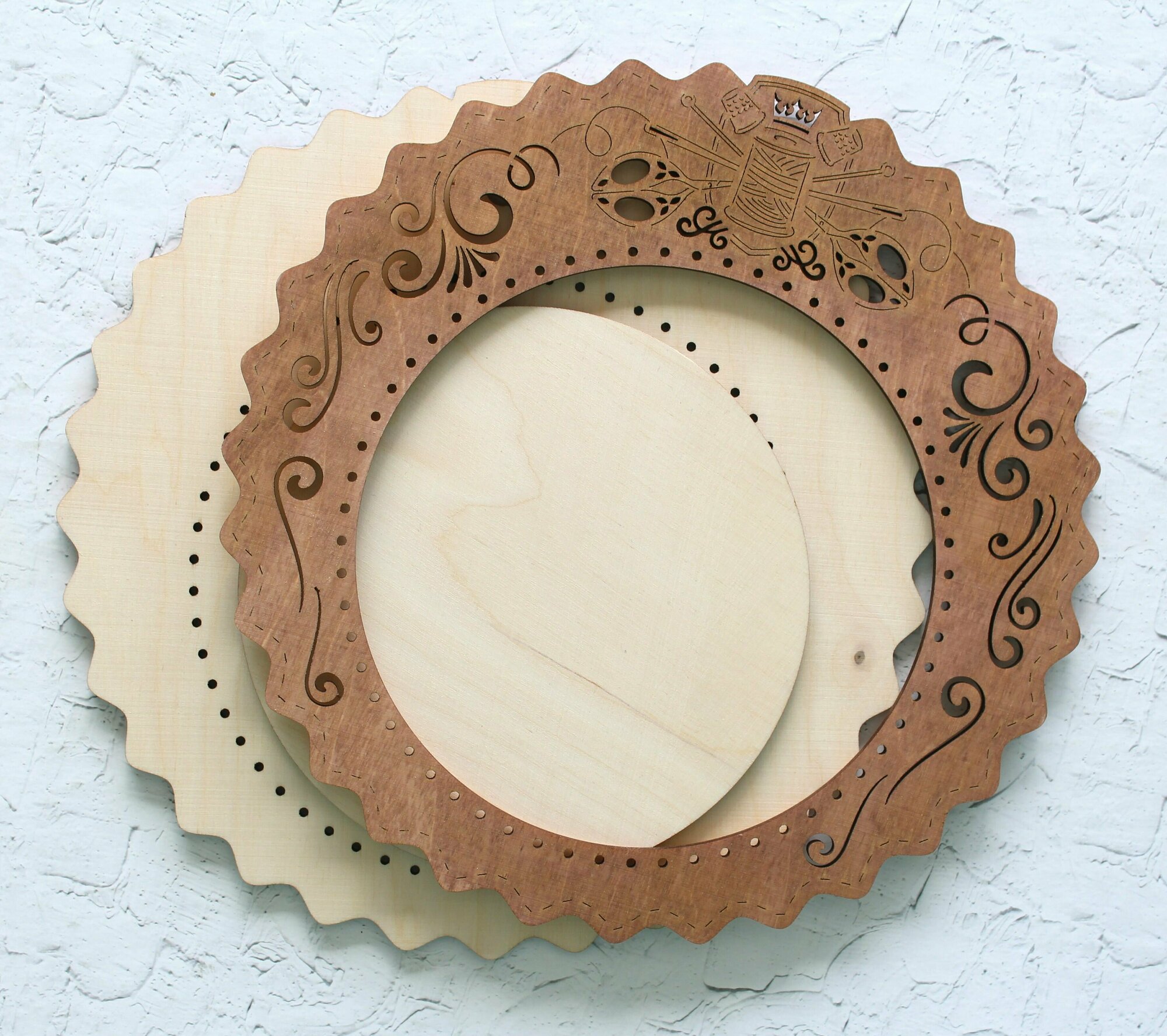| В набор входит | три детали (фанера): деталь А (основание рамки), деталь В (основа для вышивки) и деталь С (верхняя накладная рамка). |