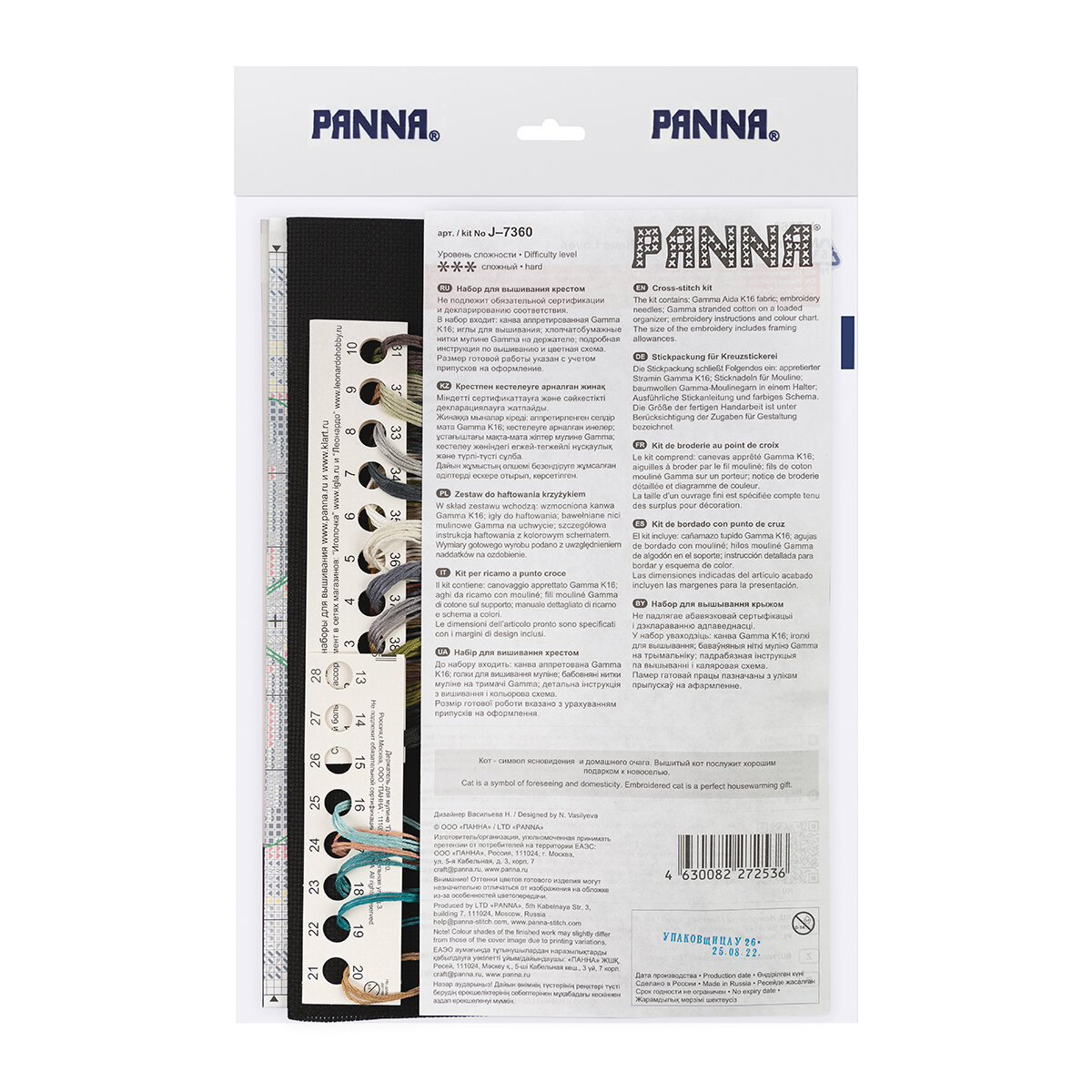 В набор для вышивания PANNA входит: канва Gamma Aida №16, хлопчатобумажные нитки мулине Gamma на держателе, игла для вышивания Gamma, цветная схема и инструкция по вышиванию. Размер готовой работы: 18 х 22.5 см. Кот - символ ясновидения и домашнего очага. Вышитый кот послужит хорошим подарком к новоселью.