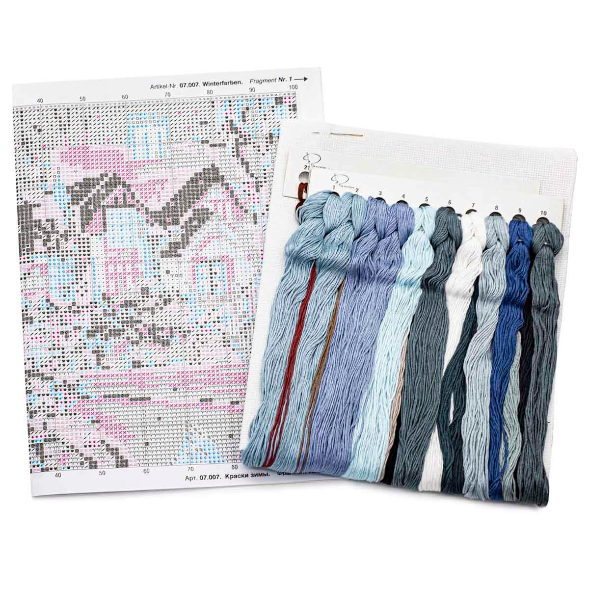 | В набор входит | канва Aida «Bestex» №16, нитки мулине „ПНК им.Кирова СПб“, игла „Pony“, 3-х цветная (чёрный, красный, синий) символьная схема, инструкция. |