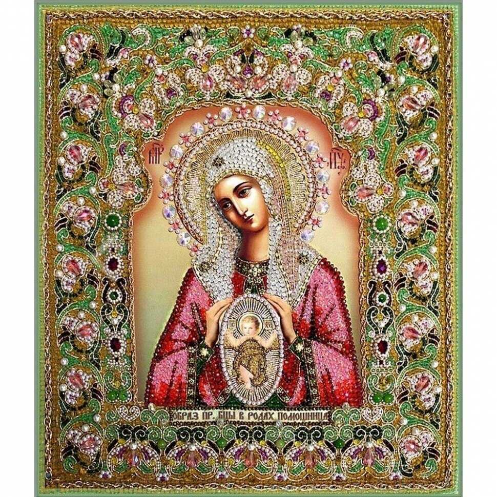 7734 Богородица Помощница в родах "Образа в каменьях" (размер: 27х35,5 см)