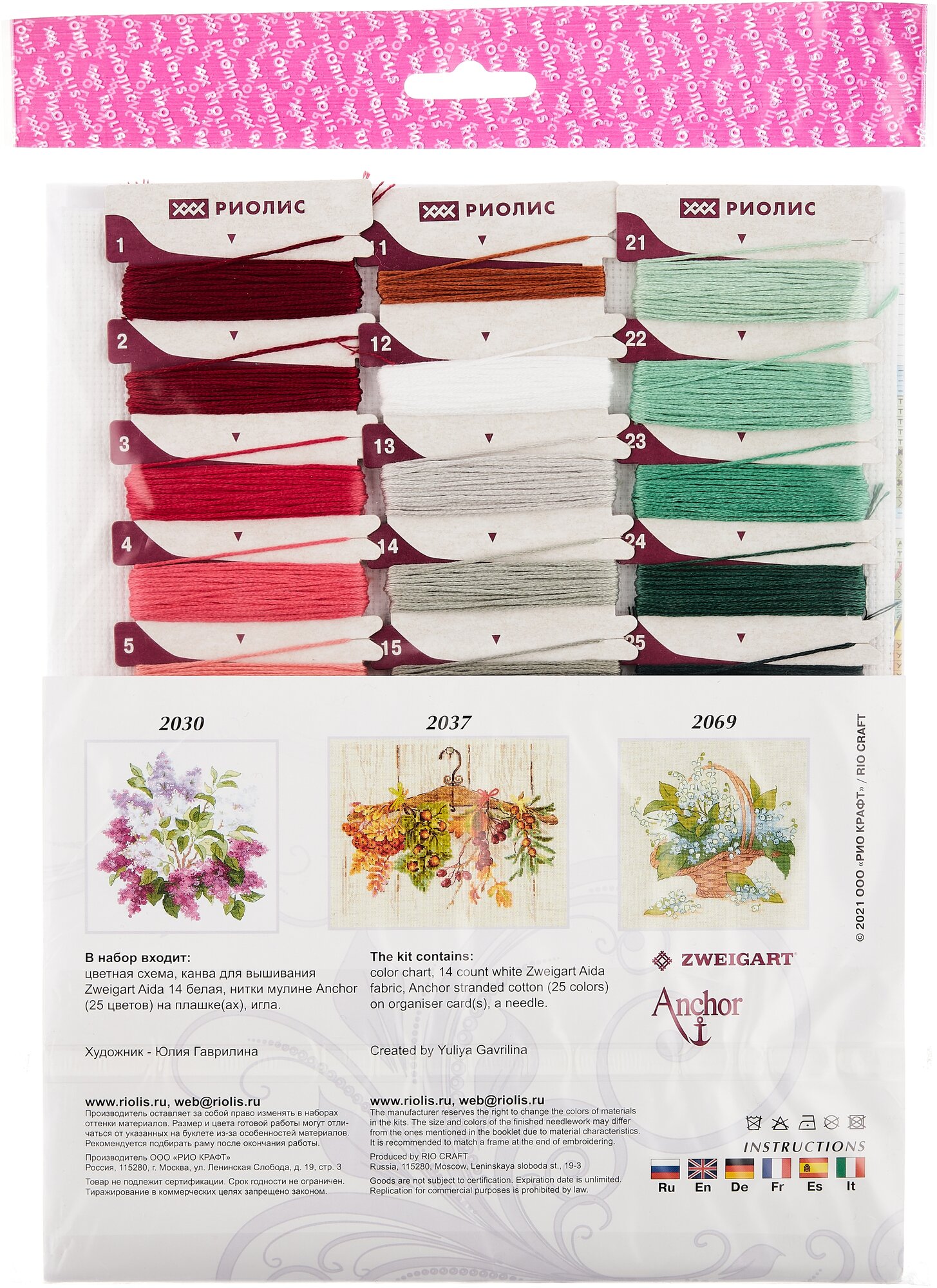 | В набор входит | 14 Aida Zweigart белая, мулине Anchor (25 цветов), игла, цветная символьная схема и инструкция |